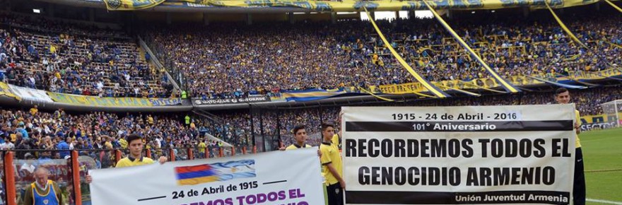 El superclásico BOCA – Club Atlético River Plate jugado el 24 de abril recordó el Genocidio Armenio con un cartel firmado por Unión Juventud Armenia de Sudamérica.